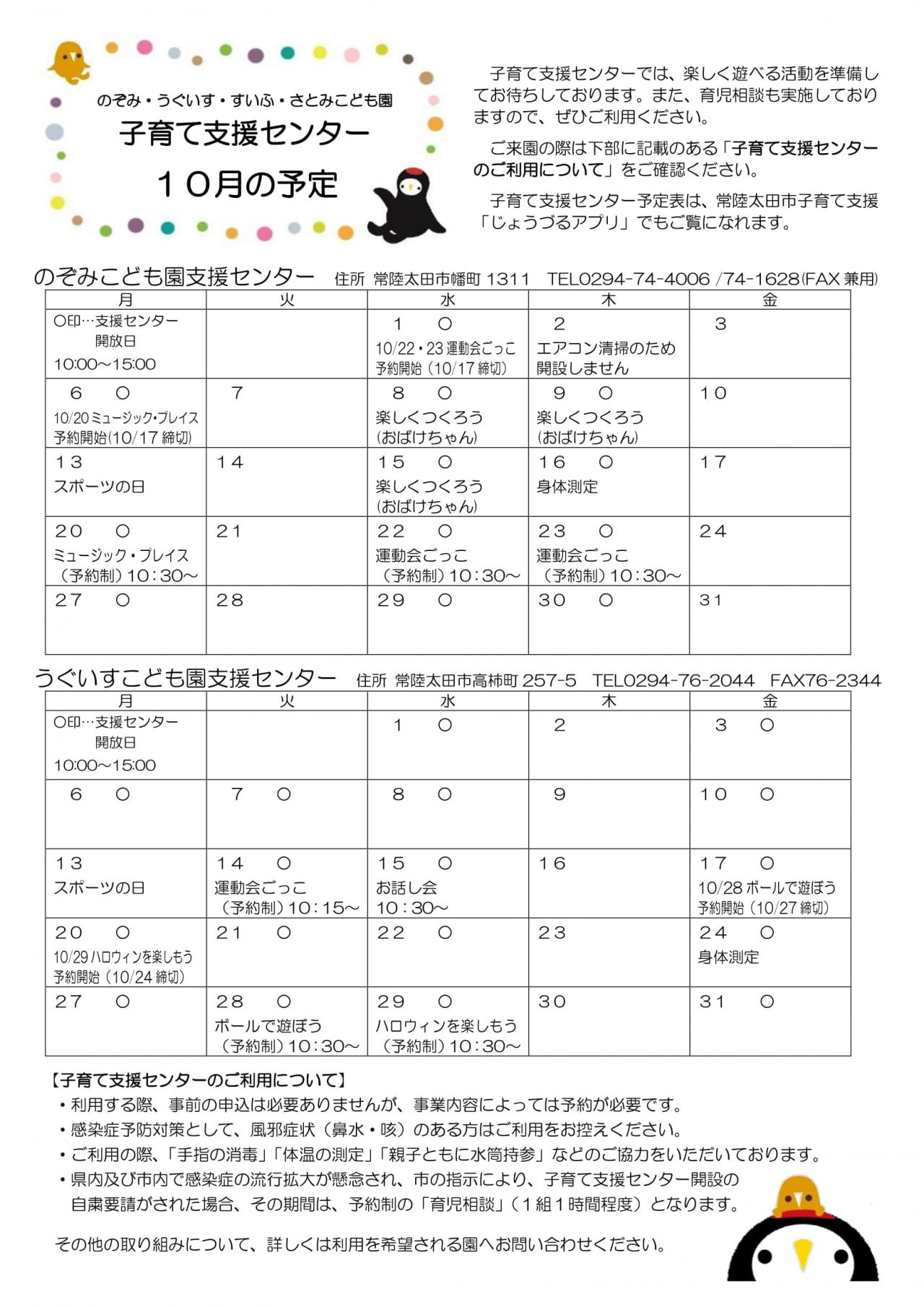 市内保育園・こども園で開設している子育て支援センターのご案内です。